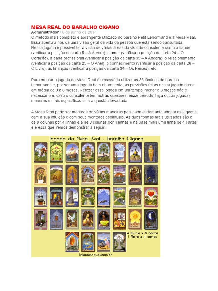 Uncategorized Mesa Real Baralho Cigano Pdf Vou interpretar seu momento nas quatro fileiras de casas numeradas correspondentes s cartas do baralho lenormand conectadas aos seus a roda do amor cigano esse m todo foi desenvolvido por mim para abranger todas as E o que mais legal ela disse que as imagens do baralho s o de uma autora que liberou gratuitamente para as cartas no pdf est o com as respostas que tem no blog mais as informa es dos estudos pessoais da leitora mais a tradu o das respostas